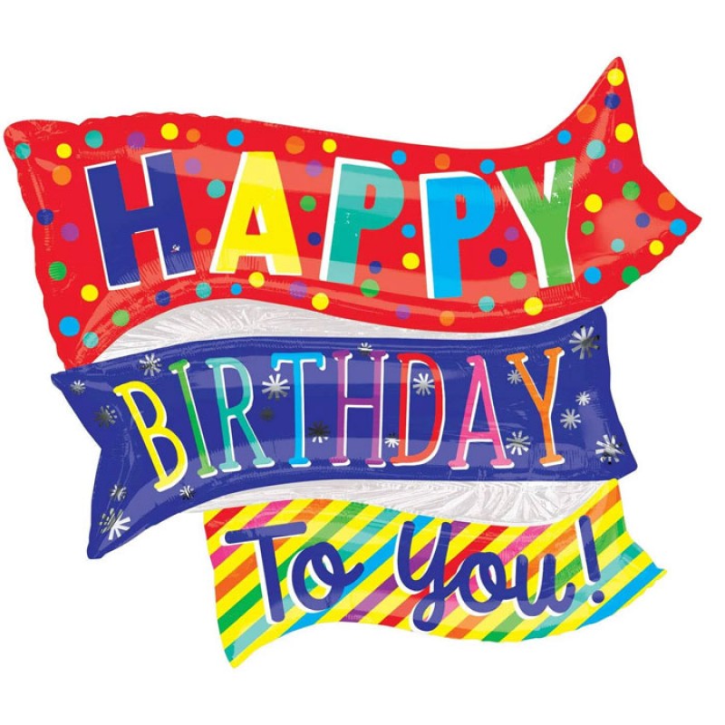 32" Jumbo Happy Birthday Fun Flags Foil Balloon - Mylar Balloons Foil